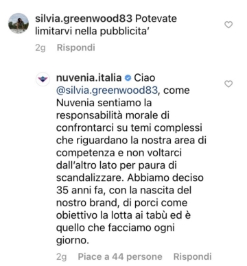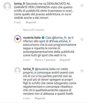 Nuvenia non indietreggia e sostiene con forza la propria campagna.